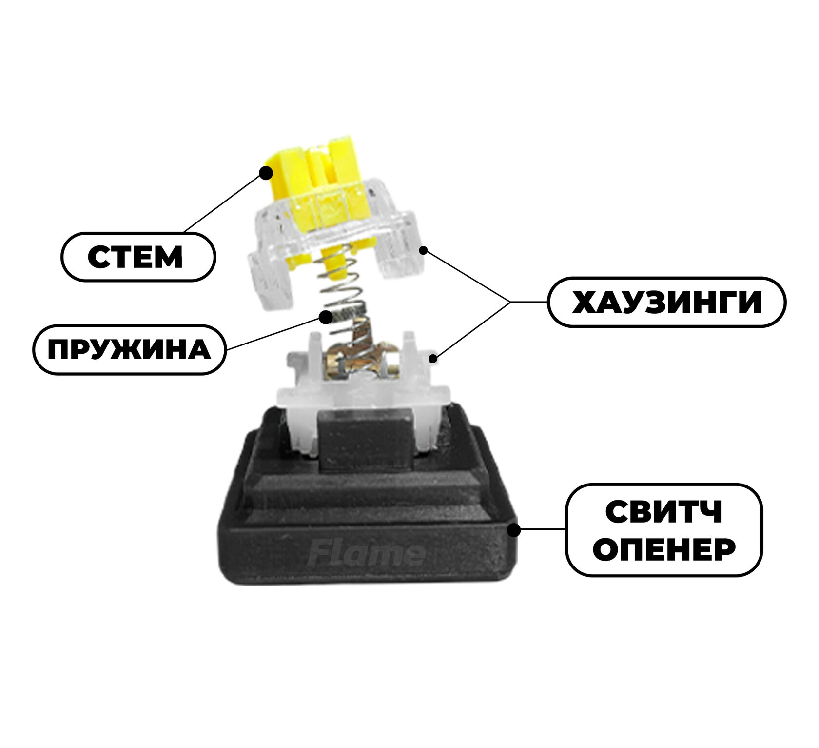 Разберите свитч при помощи свитч-опенера на составные части (Верхний и нижний хаузинг, пружина и стем).