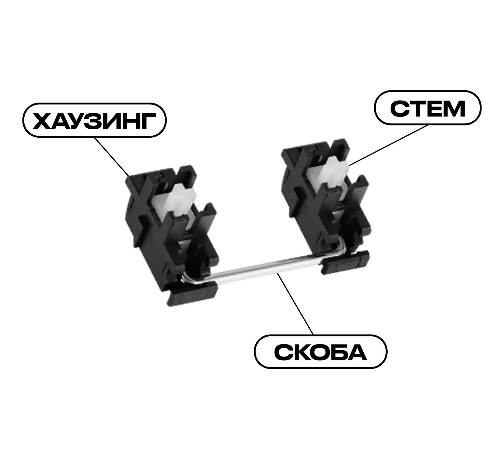 Извлекаем стабилизаторы и разбираем на составные части (хаузинг, скоба и стем).